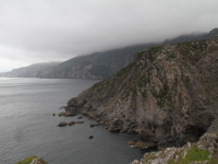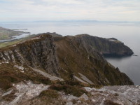 Slieve League (Irish: Sliabh Liag) is a mountain situated on the Atlantic coast of Donegal Bay in County Donegal. It is 601 m high and it has second highest sea cliffs in Ireland, the fifth highest in Europe (Slieve League's cliffs reach almost 3 times higher then famous The Cliffs of Moher in County Clare). There are two paths leading to the summit of Slieve League. One starts from Bunglass car park (where the viewing platform is), and the second one, called the Pilgrim Path, runs west from the village of Teelin. Climbing Slieve League is not difficult but requires good physical condition and extreme caution, especially on the final section known as "One Man's Pass". Reaching the summit gives a sense of achievement and rewards with stunning view across Donegal Bay to counties Leitrim, Sligo and Mayo. The alternative way to see cliffs of Slieve League is to take boat tour with Paddy Byrne. Boat operates from April to October, from Teelin Harbour (ofcourse it depends on weather conditions). In addition to the unforgettable view of cliffs, boat trip gives opportunity to see rich marine life of Donegal Bay, like dolphins, whales, seals and even basking sharks.