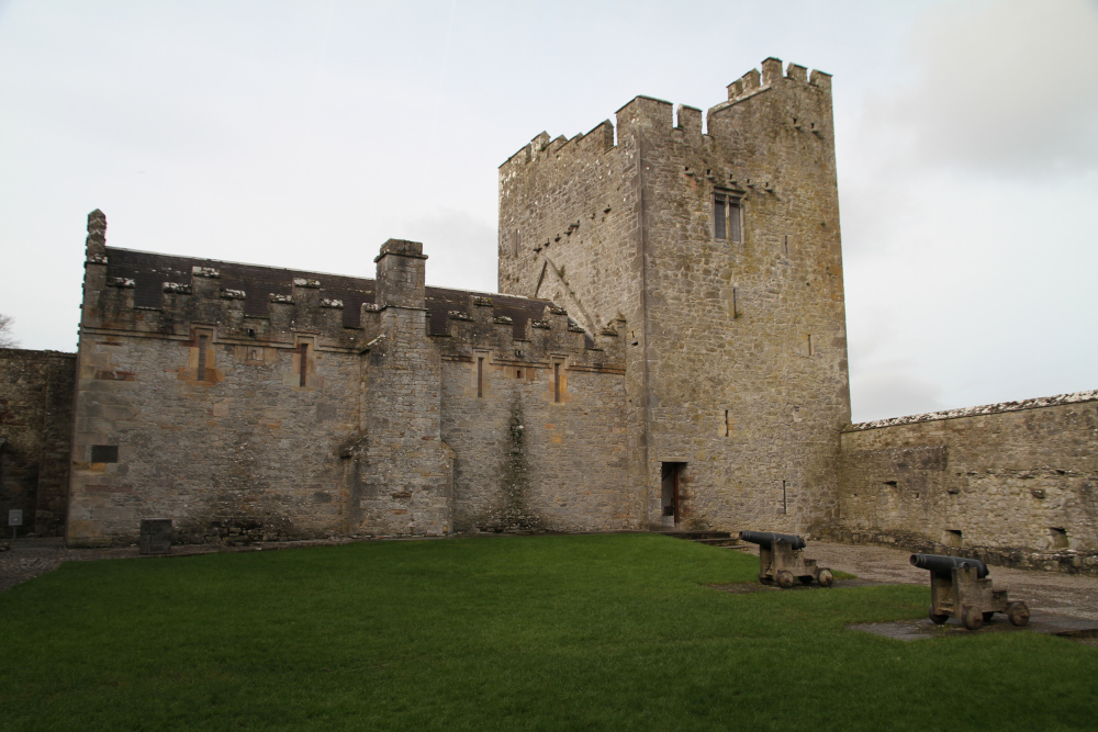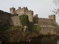 Cahir Castle (Irish: Caisleán na Cathrach) is a medieval stronghold, situated on small, rocky island, on the bend of the River Suir, in town or Cahir, County Tipperary. The earliest castle on this site was built by the Anglo-Norman, Philip of Worcester, in the 13th century (once, there was a stone fortress of powerful irish clan, O'Briens, who were banished when the Normans arrived). The fortress has been enlarged and modernized throughout the 15th and 16th centuries, when passed into the possession of the Butlers. The Butler Family sided with the Roman Catholic Irish in the Elizabethan wars, in consequence of which the castle was besieged and taken by the army of the Earl of Essex, in 1599 (one of the cannon balls from this battle is preserved in the wall of the northeast tower), and for a one year the castle was put under the charge of Sir Charles Blount. In 1650, the fortress was surrendered to Oliver Cromwell, without a shot even being fired. The Butlers regain the possession of the castle in 1652. In late18th century stronghold fell into decay. However some conservation work have been done in 1840's, the real restoration was launched after 1961, when the last Lord Cahir died and the castle reverted to the Irish state and named a National Monument. Now, Cahir Castle is managed by the Office of Public Works and it is one of the bigest and best preserved castles in Ireland.