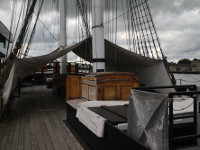 Dunbrody Famine Ship is replica of 19th century cargo vessel located in the center of New Ross in County Wexford. This kind of ships, (also known as "Coffin Ships") were used to transport people to North America and Australia during Great Famine times. The original Dunbrody was built in 1845, in Quebec (Canada), by an Irish emigrant shipbuilder, Thomas Hamilton Oliver for William Graves & Son, New Ross (Ireland) located shipping company. Dunbrody traveled between Quebec and New Ross and was able to carry out over 300 people. On its return way, the vessel was loaded with timber, cotton and guano.