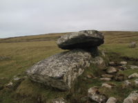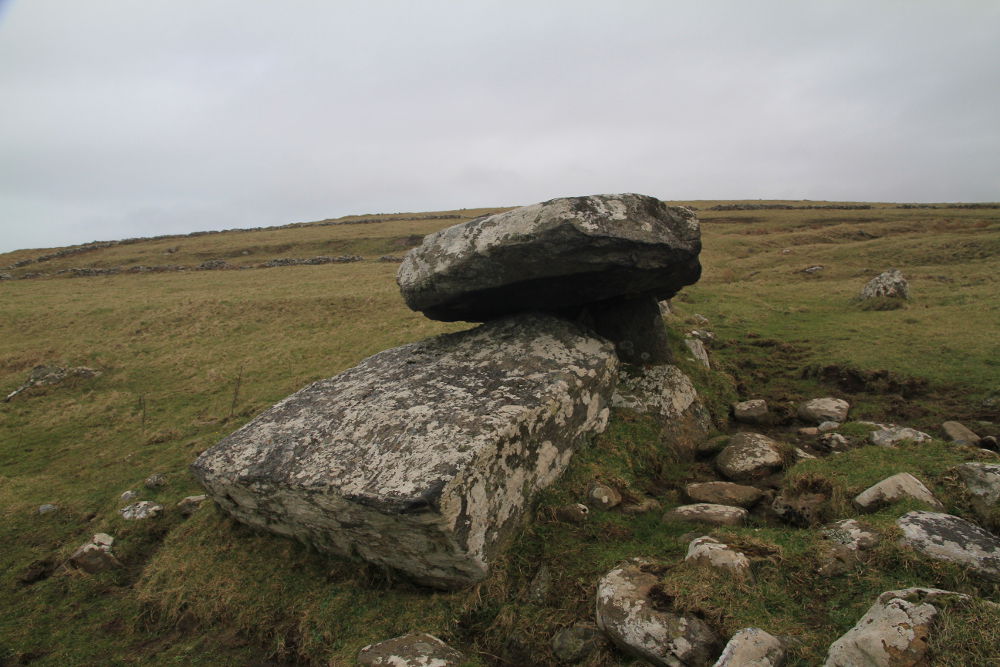 Knockbrack, also known as Labbadermot is a megalithic monument situated on the seashore on the western side of Sallerna Bay, about 1.5 km west from fishing village of Cleggan, County Galway. The classification of this megalith leaves some doubt but the interpretation as a wedge tomb is the most likely. It's also hard to define the date of its construction but assuming that is the wedge tomb, it was built between the late Neolithic and early Bronze Ages (about 2500 to 2000BC). The monument is orientated E-W and consists of small narrow chamber (2.3 m long and up to 1 m wide) covered by large roofstone (3.75 m long, 1.6 m wide and 0.3 m to 0.7 m thick) resting on three small stones (orthostats) on each side and one on the eastern end. There is also large stone laying on ground beneath the western end of roof slab which might be considered as the second roofstone but this is only speculation. The monument is situated in beautiful area with stunning views of Sallerna Bay and Inishbofin in the distance.