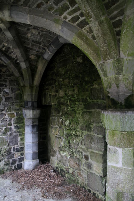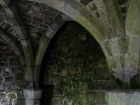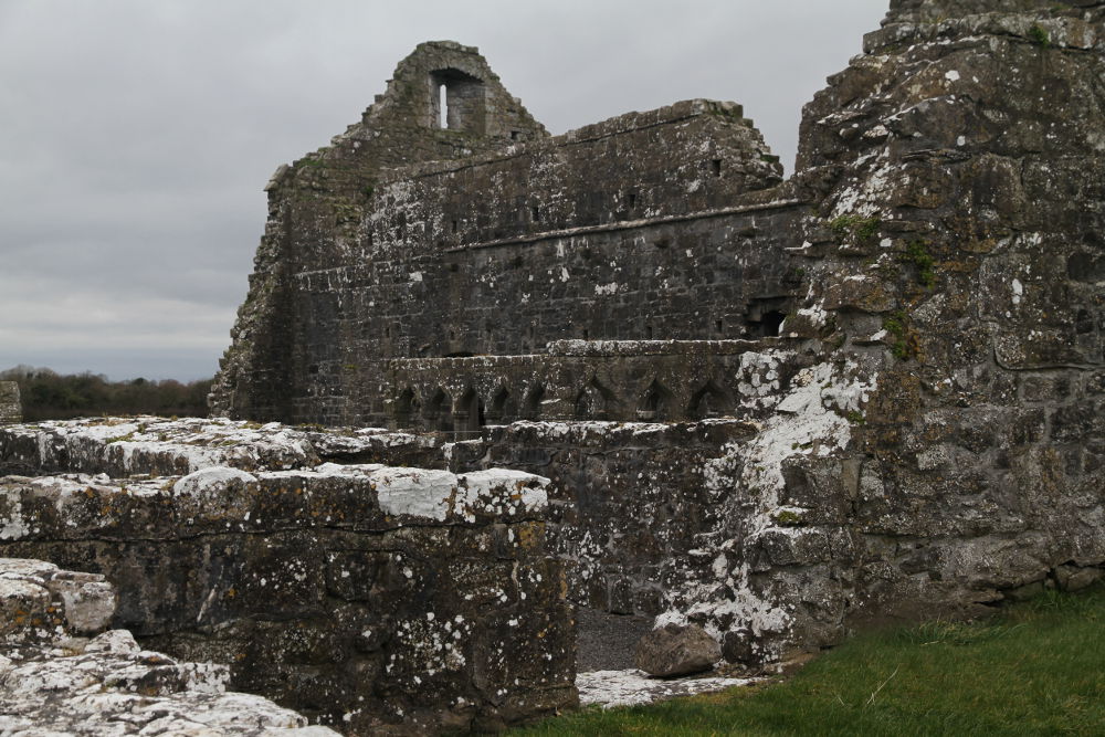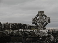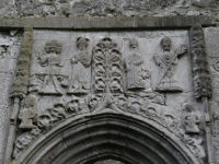 The ruins of Augustinian Priory of St Mary also known as Clontuskert Abbey is located 5 km south from Ballinasloe (just off road R355) in County Galway. It was founded in the 12th century by Turlough O'Connor (King of Connaught) on the site of an earlier monastery established in the 7th century by St Baeden but there are no surviving remains from that period. Clontuskert Abbey was burnt at the beginning of the 15th century and the standing ruins are mostly of the late 15th century reconstruction. After the dissolution of churches by King Henry VIII in 16th century, monastery was granted to the Burke family, and in 1637 regranted again to the monks, who appear to have remained in the priory until the end of the 17th century. The remaining ruins consist of a nave and chancel church with the remains of the cloister and domestic building. There are many skillfully made carvings spread on the walls of the monastery among which the most impressive is the west doorway depicting the weighing of souls by St Michael the Archangel and characters of St John the Baptist, St Catherine and the Bishop.