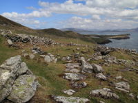 Kildreelig Early Christian Site is located in southeastern part of Bolus Head, 4.5km southwest from Ballinskelligs (just 1km further than Kilrelig Artist Retreat Village), in County Kerry. The remains of this early Christian settlement dates from 8th century and contains ruins of oratory and huts, souterrain and part of enclosing wall, but the most remarkable objects of this site are two cross inscribed stone slabs with wonderful panoramic views of the Ballinskelligs Bay in the background.