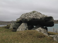 Cleggan Court Tomb is situated on the northern shore of Cleggan Bay (County Galway) within a few meters of a low cliff which rises about 9m above the sea level. The monument is aligned ESE-WNW, with the entrance towards east. The gallery contains three separated chambers, of which only the middle one retains a large roofstone (3m long, 1.7m wide and up to 0.9 m thick). The court of the tomb is no longer visible. The exact date of construction is unknown, but generally court tombs are amongst the oldest megalithic monuments in Ireland and began to appear around 4000 BC and remained in use until as late as the Bronze Age transition, c. 2200 BC. Cleggan Court Tomb is not signposted. To find it you need to follow the northern shore of Cleggan Bay until you see it. It’s not easy way, so you need to have a proper shoes and be realy carreful. You could also ask for permission and use the dirt road leading through the farmland.