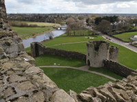 The castle situated on the banks of River Boyne in town of Trim, County Meath, is largest Anglo-Norman fortification in Ireland. The first defensive structure was built here in 1172, by Hugh de Lacy, to whom the lands of Meath were granted after Norman invasion of Ireland. It was a motte, with timber tower defended by double palisade and external ditch. Hugh de Lacy left his fortress, entrusting it to Hugh Tyrell. He was attacked and by forces of the Gaelic High King of Ireland, Ruaidrí Ua Conchobair (anglicised as Rory O'Conor) and had to flee. Wooden fortification and tower were burnt. Ua Conchobair withdrew when De Lacy returned. The seal of the truce was marriage of O'Conor's daughter with Hugh de Lacy. In 1176, he started to build the stone castle on the site of destroyed wooden fortress. It was completed c. 1224, by his son, Walter de Lacy and became stronghold of great grandeur and importance. The walled area surrounding the castle covers 3 acres (1.5ha). There are many defensive towers built into the wall, which is protected by the river itself as well as a water-filled moat. The access to stronghold is secured by two main gatehouses, the west gate, facing the town and known as Trim Gate and south gate known as Dublin Gate, which is a rare example of external barbican tower. The castle itself contains enormous chambers suitable for public gatherings (7 parliments were held here), courts and feasts, with chapel and residential spaces arranged in the castle's towers. Within the walls there were also houses, stables and Great Hall. It seems the castle has creased to be a residence after the middle of 14th century. During the 15th century the Irish Parliament met in Trim Castle seven times and a mint operated in the castle. In the 16th century Trim Castle fell into decline but was refortified during the Irish Confederate Wars in the 1640s. In 1649 was taken over by Oliver Cromwell's troops. In 1993 the last private owners of the castle, the Dunsany Plunketts sold the land and buildings to the State. In 2000, after big renovation, conservation and exploratory works carried out by OPW (Office of Public Works), Trim Castle was opened to the public as tourist attraction. The surrounding area is very picturesque and is populalar place for walks along river. The Trim Castle is also noted for its role in Mel Gibson's movie, "Braveheart".