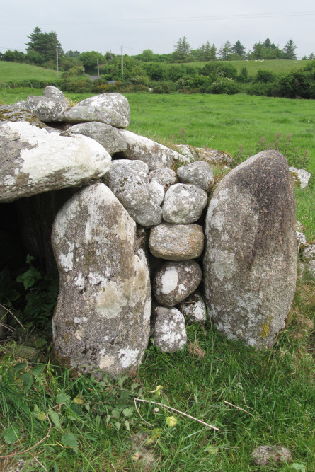 Carrowcrom Wedge Tomb is located 9 km southeast of Ballina town in County Mayo. This well preserved megalithic monument dates back to c.2500 - 2000 BC. The gallery is about 3.5m long with the entrance of 1.5m wide flanked of each side by a short facade consisting of four large orthostats with drywalling between them. It is covered by single, 2m long capstone. The monument is associated with legend about mythical lovers, Diarmuid & Gráinne, who spent the night here. On the old maps, it appears as "Dermot and Grania's Bed".
