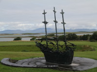 Croagh Patrick is third highest mountain in County Mayo and has 764 m. This is Ireland's Holy Mountain, one of the most sacred and important sites of pilgrimage. The legend said that St. Patrick has fasted and prayed for 40 days here and also said that Croagh Patrick is the mount from which he banished snakes from Ireland forever! There is annual pilgrimage on the last sunday of July, when thousands of people climb the mountain to summit chapel. The final part of the climb is not easy, but the views are stunning: Twelve Bens in Connemara on the south, hundred of small islands in Clew Bay, Achill Island or even Slieve League in County Donegal on the north. The shortest and most well known route up starts from the large car park in Murrisk and it takes around 2 hours to get the summit. The opposite side of the car park there is National Famine Memorial which abstractly resembles a coffin ship filled with dying people, and just to the seaward side of the monument there is the Murrisk Abbey, a ruined Augustinian monastery founded by the O'Malley family in 1457.
