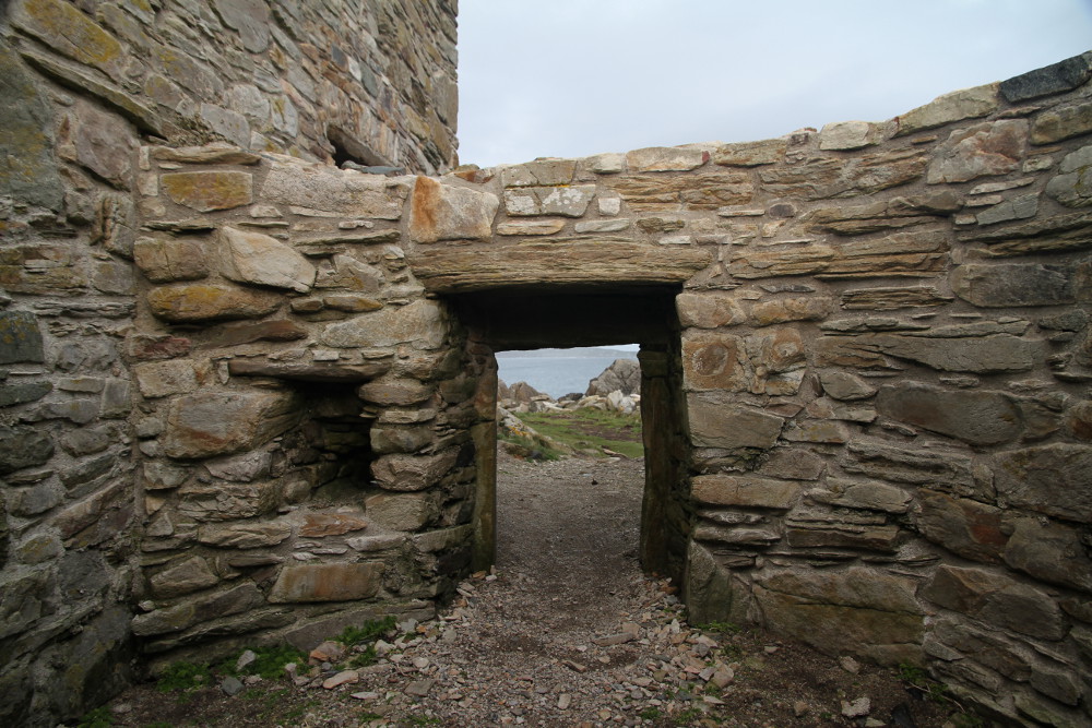 Carrickabraghy Castle is located about 10 km north from the village of Ballyliffin (on the northern tip of Pollan Strand) on Inishowen peninsula in County Donegal. The castle was built in 16th Century, probably by Gearalt O'Doherty who held the lordship of Inishowen at that time. The last Irish lord of this land and the castle was Cahir O’Doherty, who died in 1608. After his death Carrickabraghy Castle was apparently abandoned and it fell into decay. Thanks to a grant from the National Rural Development Programme Leader and collected funds from local charity events and private donators, the Carrickabraghy Restoration Society was able to complete the first phase of the work of conservation in December 2013, saving the castle from total collapse.