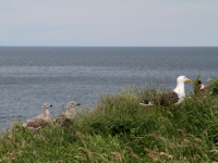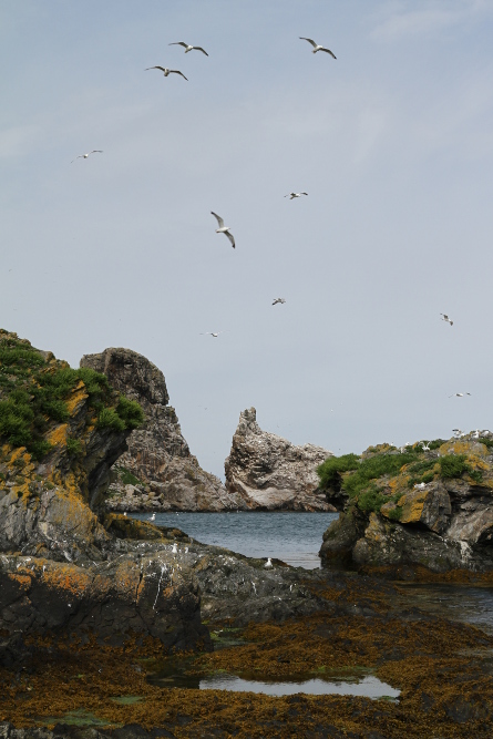 Ireland's Eye is also renowned sea-bird sanctuary. In summer it's home to large numbers of breeding seabirds, including Sedge Warblers, Whitethroats, Oystercatchers and Ringed Plovers, Guillemots, Cormorants, Razorbills, Fulmars, Kittiwakes, Shags, Lesser Black-backed Gulls, Herring Gulls, Great Black-backed Gulls, Gannets and Puffins. Large freestanding rock called "the Stack", at the northeastern corner of the island became home for fifth biggest gannet colony in Ireland. The colony was established in the 1980s and since then there are a few hundred pairs breeding each year. The Grey Seals can also be seen around the island.