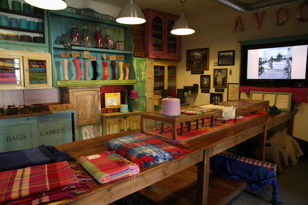 Avoca Handweavers Woollen Mill is located in Avoca Village, on the south east end of County Wicklow (about 10km north west from town of Arklow). It is the oldest working woollen mill and one of the oldest surviving businesses in Ireland, established in 1723. The mill was built on the banks of the Avoca River and used for grinding corn, and also for spinning and weaving wool, to provide food and fabrics for miners working in the nearby copper mines.