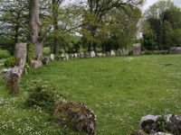 Grange Stone Circle (also known as The Lios) is located beside the road R 512 (Limerick-Kilmallock), 4 km north of Bruff in county Limerick. It is largest stone circle in Ireland, which consists of 113 stones and has 46 m in diameter. It's surrounded by wide earthen, flat-topped bank, about 1.2m tall. There is narrow, stone-lined entrance on the north eastern side with large portal stones. Twelve large orthostats have been placed at intervals around the stone ring, each standing directly opposite one of the other 'axial' stones. The site had a ritual function and it has been suggested that the embankment could have been used for spectators to view proceedings in the interior.